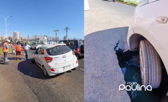 Un vehículo menor cayó la jornada de ayer en un socavón que se generó en la pista poniente de la Avenida Arturo Prat, en la ciudad de Iquique.