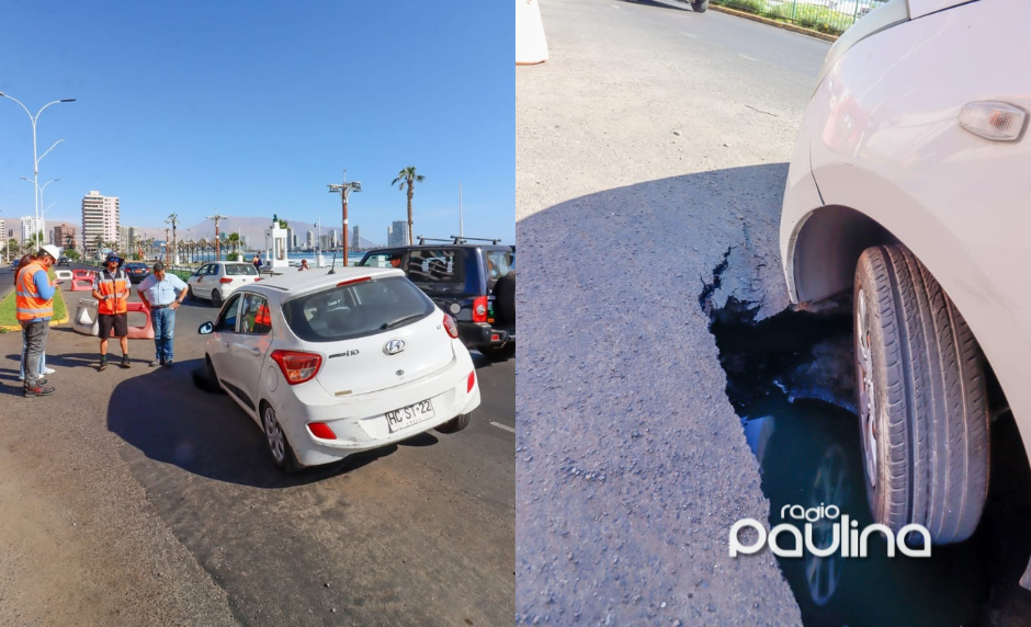 Inicio Regional Iquique Automóvil cayó en socavón en avenida Arturo Prat de Iquique por falla...