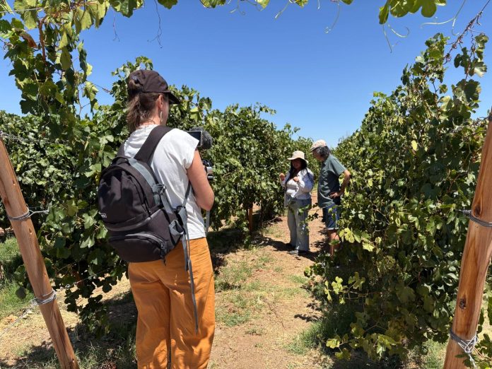 Durante su visita, el especialista recorrió la Estación Experimental Canchones, espacio donde investigadores y profesionales de la Facultad de Recursos Naturales Renovables desarrollan desde hace décadas estudios sobre vitivinicultura en condiciones extremas.