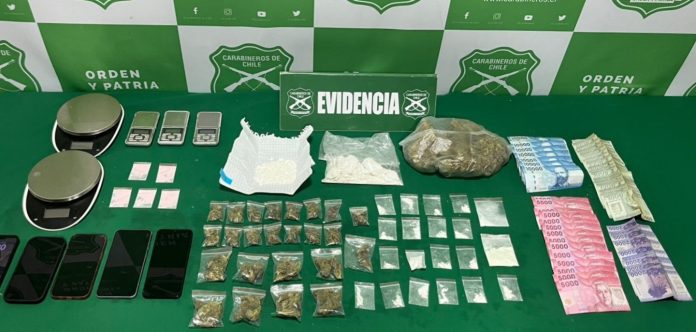 Durante el procedimiento, Carabineros incautó un total de 931 dosis de droga, correspondientes a marihuana, clorhidrato de cocaína y ketamina, además de $267.500 pesos en dinero en efectivo y diversas especies utilizadas para la dosificación de las sustancias.