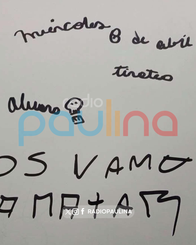 El Ministerio Público indicó a Radio Paulina que en la jornada del martes 7 de abril, el colegio denunció que encontró escrito en el baño de hombres una amenaza de un tiroteo en el recinto para este miércoles.