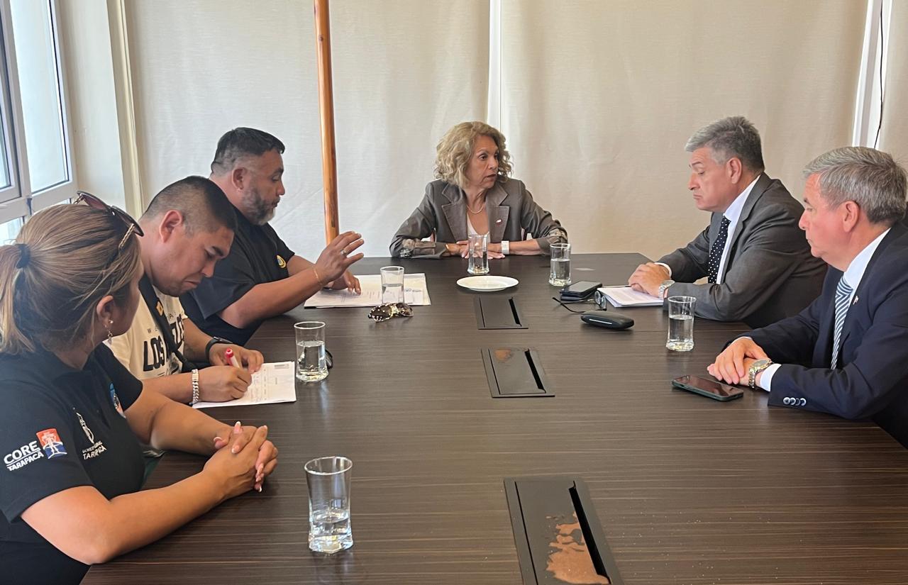 En el lugar fueron recibidos por el seremi de Transportes y Telecomunicaciones de Tarapacá, Carlos Navarrete; el seremi de Seguridad Pública, Omar Salazar; y posteriormente por la delegada presidencial regional, Adriana Tapia Cifuentes.