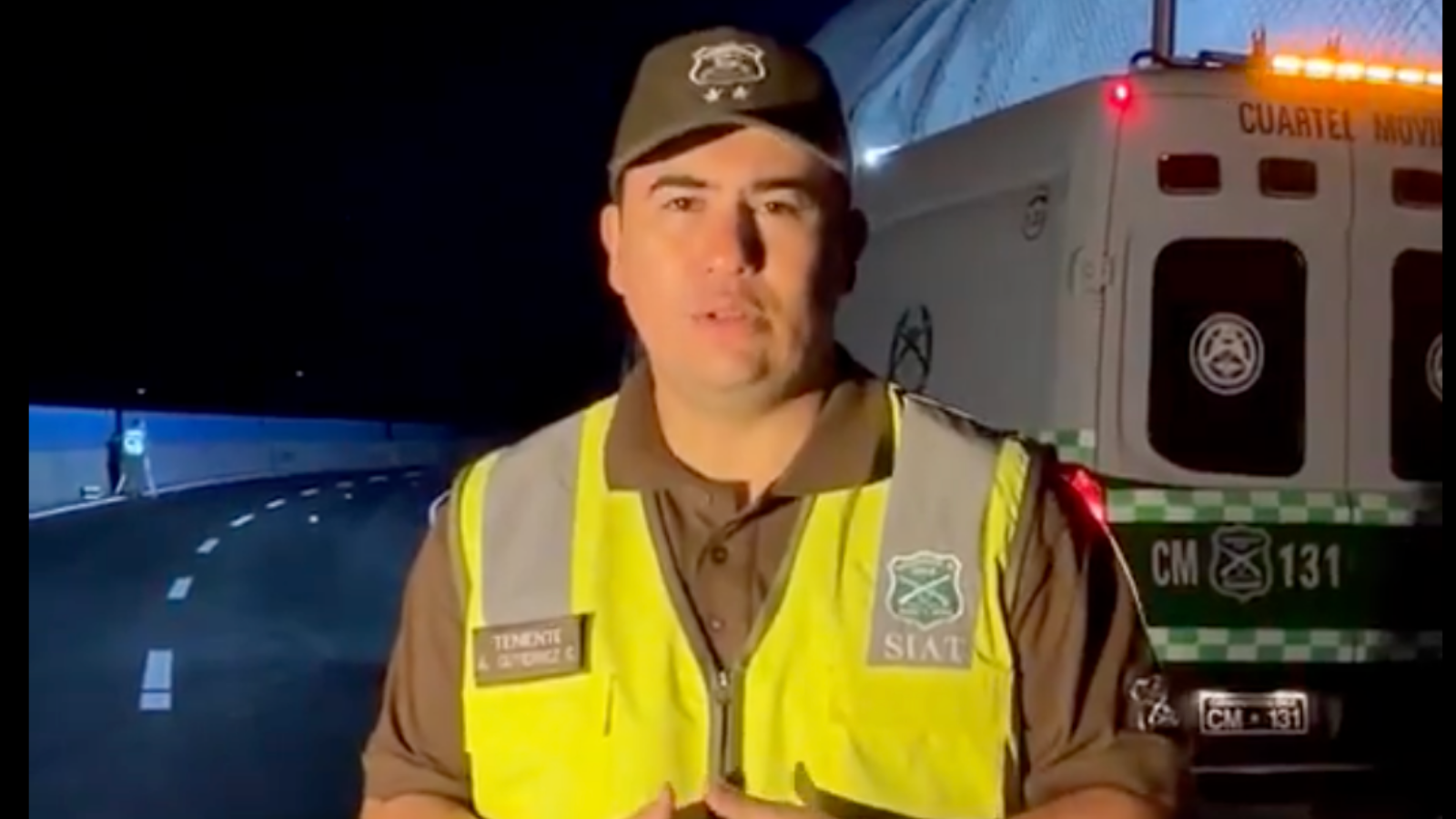 Carabineros reiteró el llamado a los conductores a manejar atentos a las condiciones del tránsito, respetando una velocidad prudente y utilizando siempre el cinturón de seguridad, con el fin de reducir las consecuencias ante un eventual accidente.