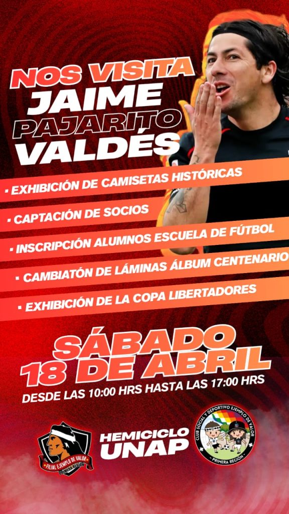 Junto con la visita del astro albo, la filial “Ejemplo de valor” organizó un torneo infantil de fútbol el cual se realizó en las canchas de Asociación de Fútbol de Iquique, frente a su similar de Alto Hospicio y la celebración de Pascua de Resurrección en un comedor solidario, reafirmando el compromiso social que tiene “ejemplo de Valor” para con la comunidad.