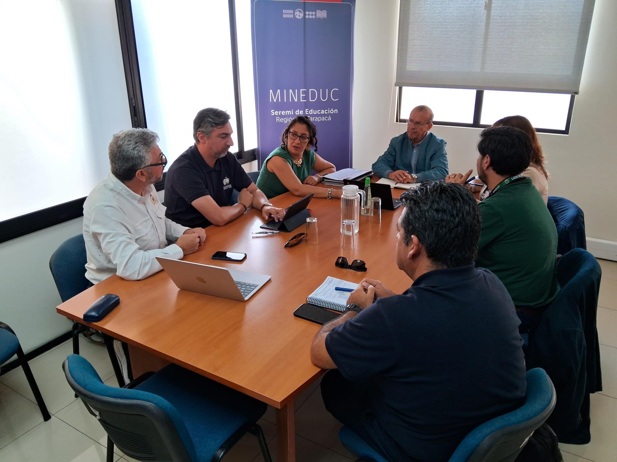 El seremi de Educación de Tarapacá, Leonardo Gálvez, junto a la jefa del Departamento de Educación de la Secreduc, Gladys Pérez, encabezó una reunión con la red de establecimientos educacionales de Alto Hospicio para coordinar acciones orientadas a fortalecer la seguridad, la convivencia escolar y el bienestar de las comunidades educativas.