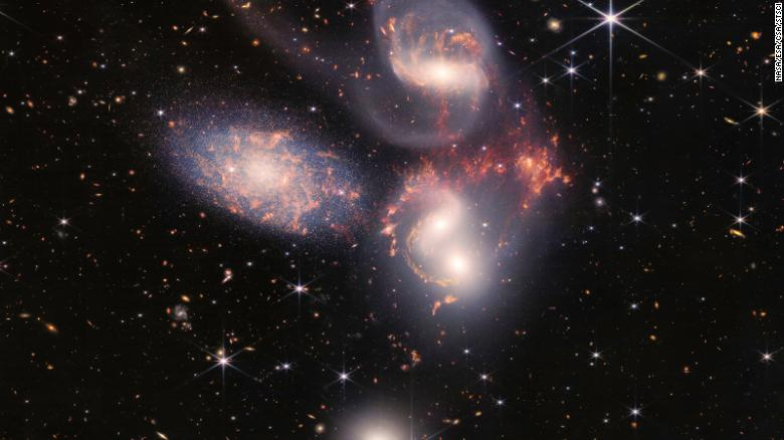 Webb ha proporcionado también una nueva e increíble vista del Quinteto de Stephan, un conjunto de cinco galaxias, de las que cuatro interactúan entre sí, ubicado a 290 millones de años luz.